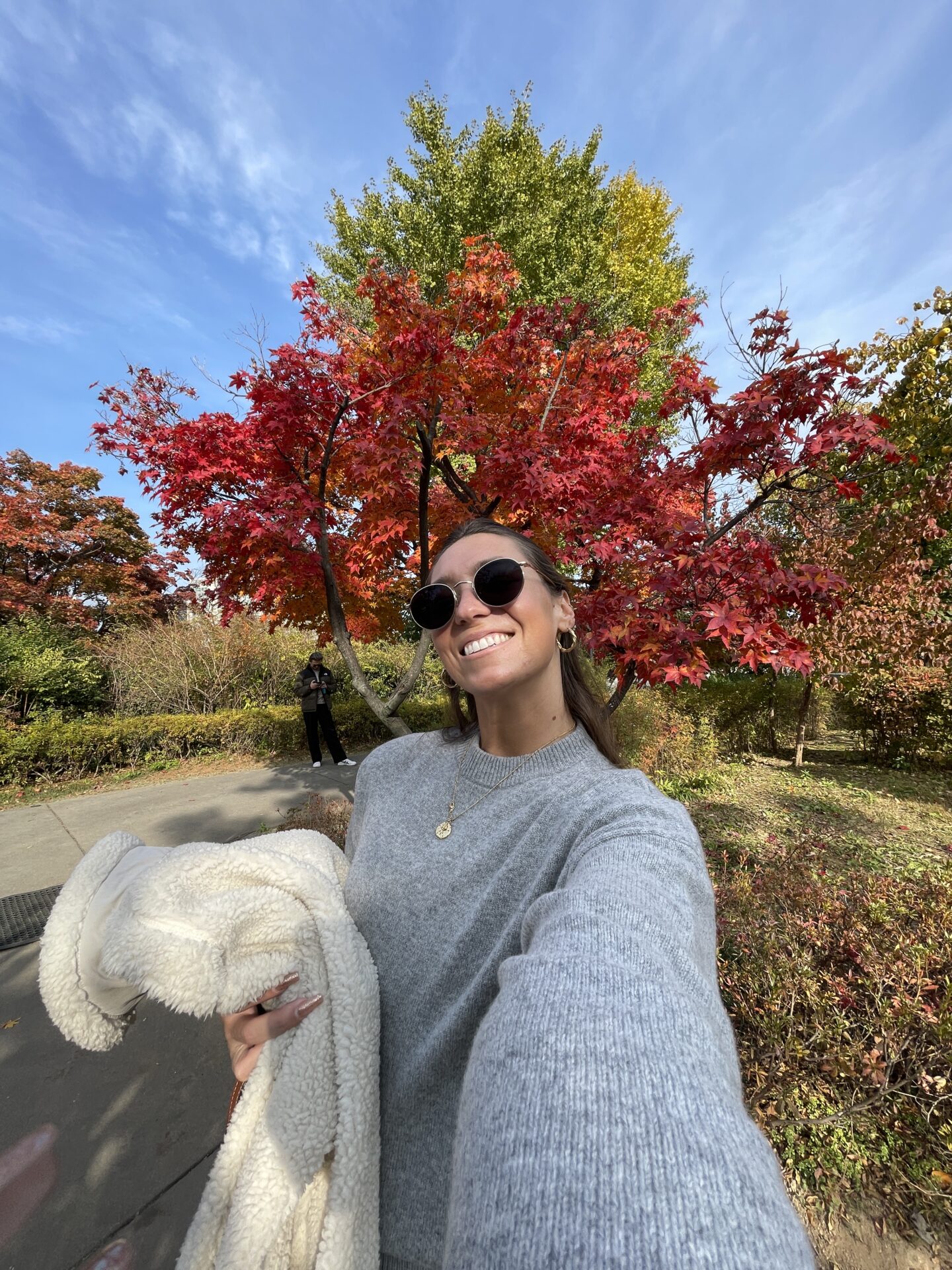 I was there in the first week of November, and it turns out that’s totally normal! Even though I was expecting fiery reds and oranges everywhere, a lot of the trees in and around the city were still super lush and green. I did get to see a few hints of color starting to pop out here and there, but that was about it.