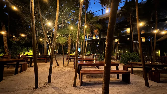 I only went here once, on my most recent trip to Tulum, but it ended up being one of those dinners that sticks in your memory. The restaurant is set right on the beach, and it’s basically as “boho Tulum” as it gets with cozy corners, lanterns, and dreamy beachside vibes.