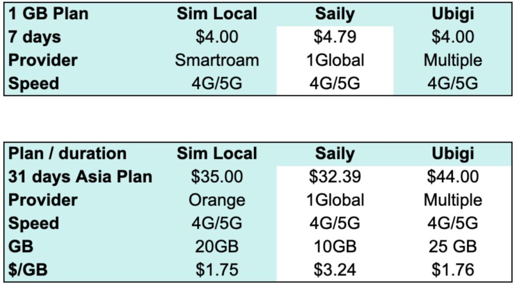 In my experience, I usually find the best deals with Sim Local. They’re generally the most affordable for the amount of data you get, and they often run specials where you can snag a 10–20% discount, which I always try to look out for.