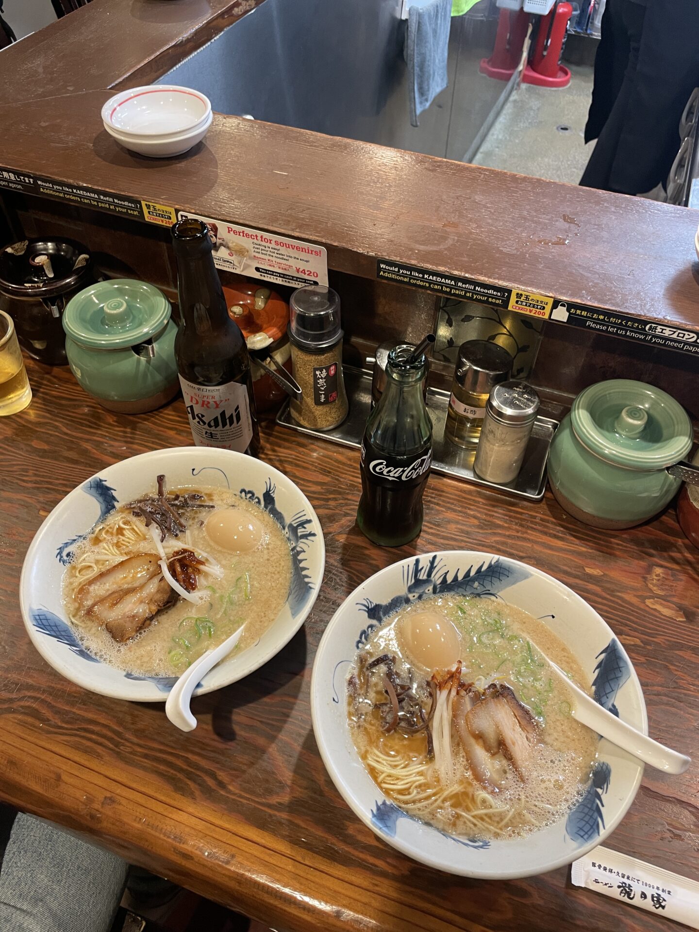 One thing to know is that waiting in line for ramen is pretty common, especially at popular spots. That said, lines usually move fast. Ramen isn’t a long, sit-down dinner in Japan. People come in, order (often via a vending machine or a simple order slip), eat fairly quickly, maybe have a beer, and then leave. Lingering at the table isn’t really a thing, and blocking a seat would be considered rude. As much as I love ramen, it’s rarely a cozy, drawn-out dinner experience. It almost feels closer to fast food in Japan, just incredibly good fast food.